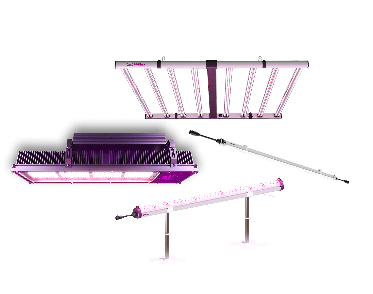 ScarLED offers a full solution product assortment tailored specifically to your crops, designed to perform across all canopy levels and growth environments. From multilayer and vertical systems to under-canopy applications, the range delivers uniform light distribution, consistent plant development, and optimized yields. Ensuring the right lighting solution for every cultivation need.